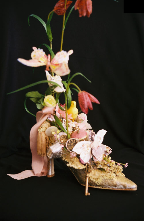 One-of-a-kind Floral Designer Shoe Floral designer, Maxine Nicklos, has designed an opulent shoe filled with laces, a silver basket, tassels, ribbons, silk flowers, a bird, butterfly and more. The shoe is overflowing with creative elegance. The shoe is signed. Proceeds from the sale of this one-of-a-kind shoe will help support youth programs sponsored by the Overlake Service League, a non-profit organization, in Bellevue, Washington. Your winning bid is tax deductible. For questions about the charity donation or more information contact Overlake Service League. This is OSL auction item number 41. Thank you for bidding. |